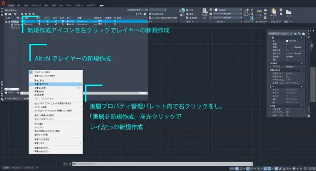 画層を作成してみましょう。「画層プロパティ管理」画面で設定します。