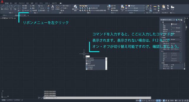 リボンメニューからいちいち選択するのが手間となるコマンドの1つです。エイリアスでぜひ覚えておきましょう。