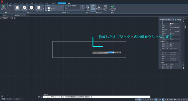 ③ 「内側の点をクリックまたは」と表示されますので、描いた長方形の内側をクリックします。