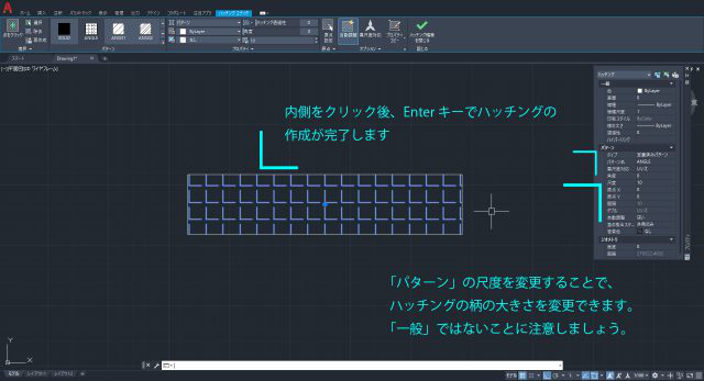 ④ [Enter]を押すとコマンド終了となり、ハッチングが作成されました。