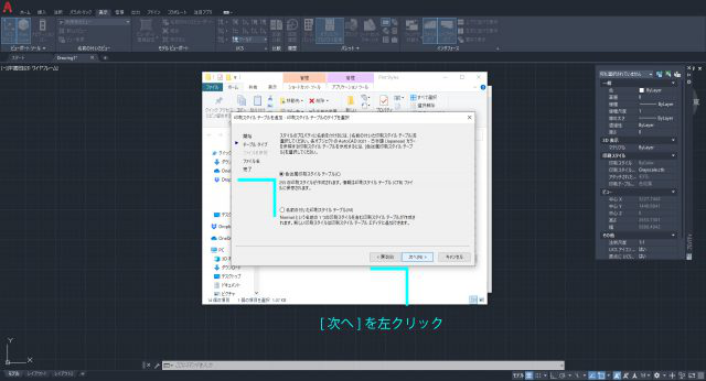 [印刷スタイルテーブルを追加ウィザード]を左クリックすると、 [印刷スタイルテーブルを追加]という項目が表示されるので、[次へ]を左クリックします。