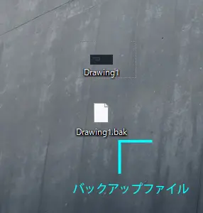 1つ目は、バックアップファイルです。拡張子は[.bak]です。作図しているAutoCADデータの存在するフォルダ内に自動的に作成されます。
