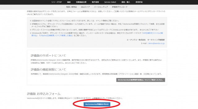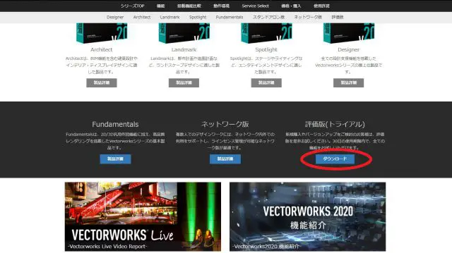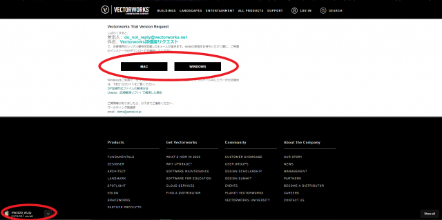 次のページで、評価版お申し込みフォーム下のVectorworks評価版を申し込むをクリック