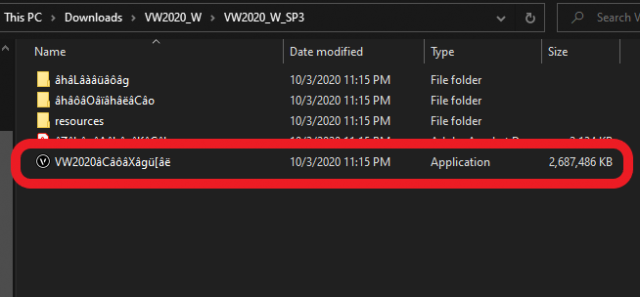 展開が終わると、展開されたフォルダー先に移動します。そこで、Vectorworksのロゴマークのあるファイルをクリックすると、インストール画面に移ります。