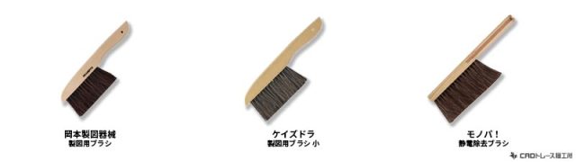 簡単に「ハケ」などとも呼称することもあります。製図用ブラシは図面を描画する際に発生する消しゴムの消しカスや、その他図面上のごみなど不要なものを除去する際に使用します。消しカスなどのごみやほこりを、製図用ブラシを利用して除去することはとても大切なことで、これを利用しないで手でラフにごみ除去をすると、手指の脂が図面に残ることがあります。そうなると、線がにじんだり、またそもそもしっかりと線が引けない等、製図作業に影響をきたす事になってしまいます。ですので製図用ブラシを使用することはとても重要です。