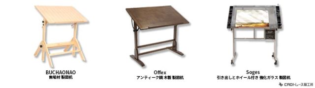 例えばA2サイズ用紙でも420×594mmという大きさなので、これを収めてその上で製図に関わるアイテムを付近に並べることの出来るスペースを持つ事は汎用品の机では少々難しいです。そこでその机が大きなサイズ、また描画しやすいように角度を取ることのできる機能などを持つことが非常に効果的で、それらを兼ね備えているのが製図用机です。