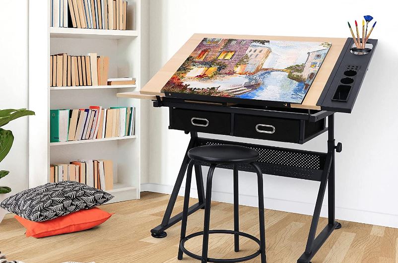 製図机のおすすめ人気ランキング第9位は『BUCHAONAO 傾斜 調整可能 製図机』です。テーブルトップの右側には文房具ストレージ、左側には追加のカウンタートップがあります。また2つのメッシュ引き出しも付属されており機能性の高い製品です。もちろん角度調整も可能です。