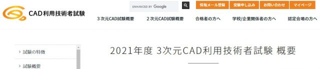 | 受験料 | 3次元CADコース:8,000円 図面作成コース:10,000円 プロ設計者コース:15,000円 |