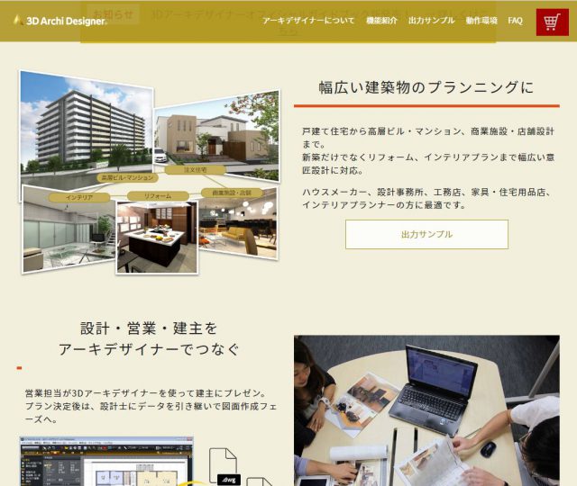 | 特徴 | 3Dアーキデザイナーは国産の建築3DCAD。3Dマイホームデザイナーで有名な会社の上位ソフトです。企画・設計・申請を効率化し、3Dデータから各図面をワンクリックで作成できる機能を備えています。建築設計を主とした図面作成の効率化と一元管理を可能にするソフトです。 |