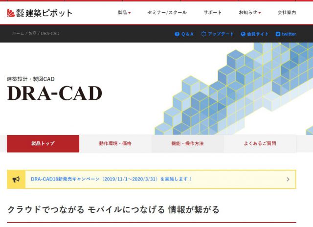 | 価格 | DRA-CAD18 建築設計・製図CAD 209,000円(税込) DRA-CAD18 LE 建築2次元製図CAD 104,500円(税込) |