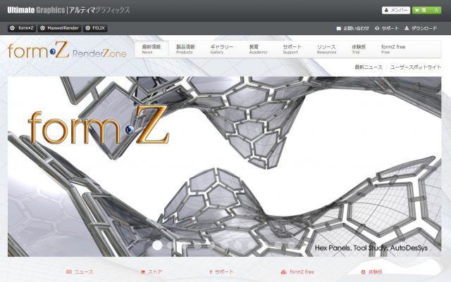 | メリット | ・直観的で分かりやすいインターフェイスと覚えやすい操作概念 ・強力なアドオンソフトにより高品質なライティングも可能 ・無料で使えるform・Zfreeも配信されており、導入検討しやすくなってます |