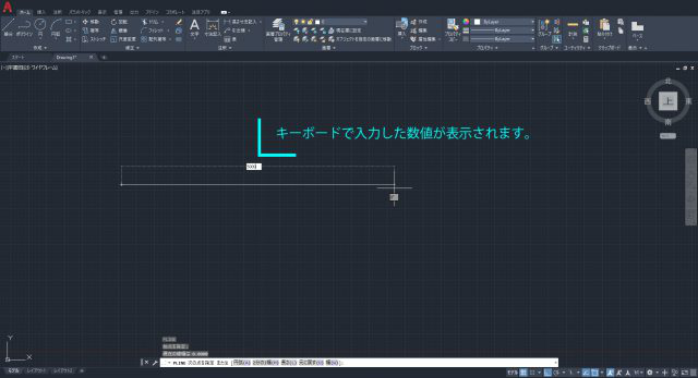 ③線を描きたい方向にマウスを移動させ、キーボードで「5000」を入力し、Enterキーを押します。