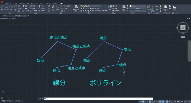 線分は複数の線データが存在し、ポリラインは1つの図形データとなります。