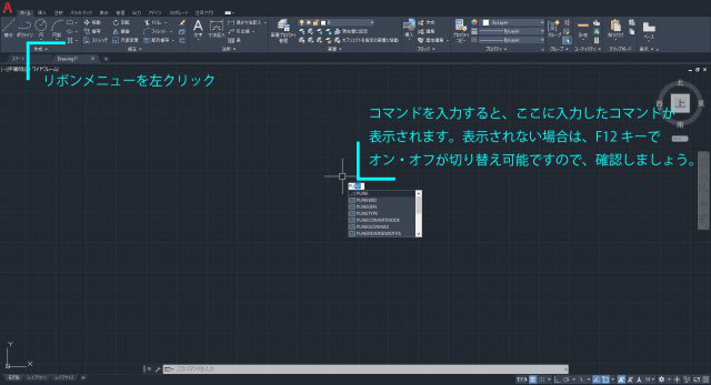 「ここにコマンドを入力」と画面下にありますが、キーボードでコマンドを打ち込めば、コマンドは自動的に入力されます。