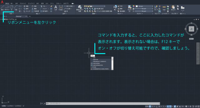 AutoCADでは、Enterキーによりコマンドを実行し、Enterキーによりコマンドを終了することが基本です。