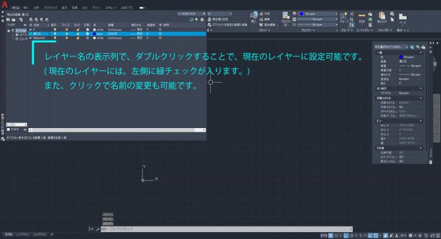 通り芯画層をダブルクリックし、現在の画層に設定しましょう。