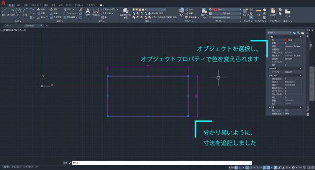 マウスホイールで拡大又は縮小すると、先ほど作図した長方形が現れますでしょうか。(基本は縮小で現れるはずです。)