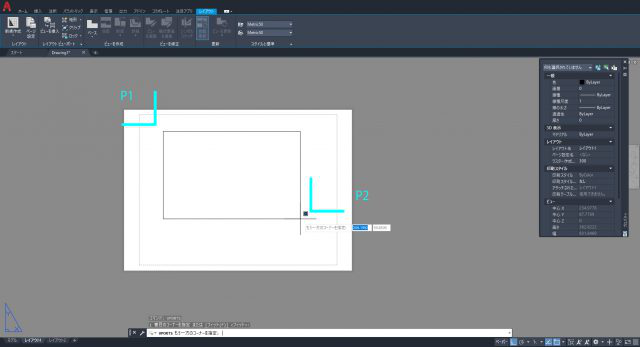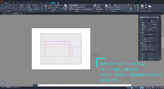 因みに、「ペーパー空間」に戻る操作は、コマンド「PSPACE」で可能です。戻る操作は、コマンド入力に慣れた方が効率的で良いです。