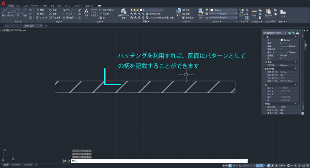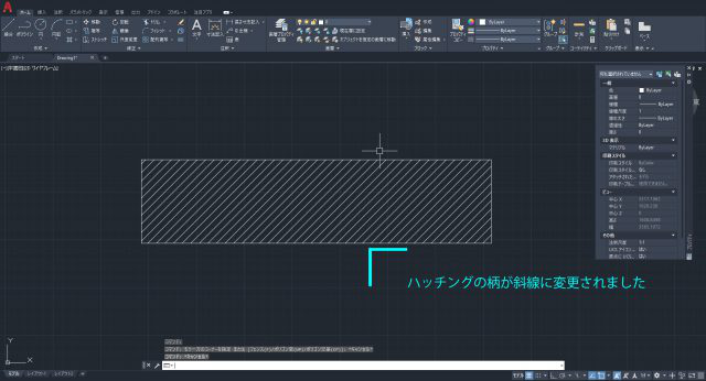 ② 「H」を入力してEnterキーによりハッチングを実行します。