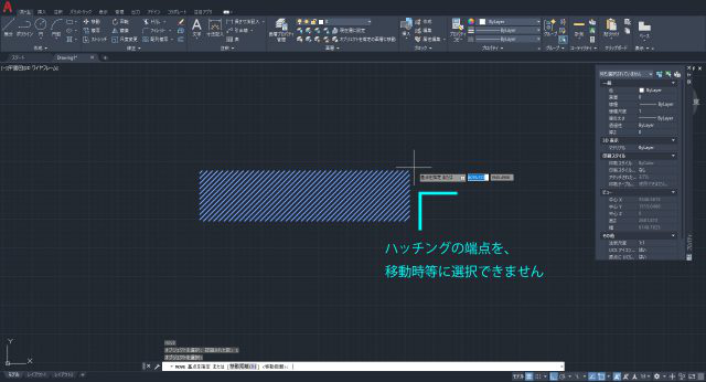 ハッチングの端部等は移動やコピーコマンド時に選択できない