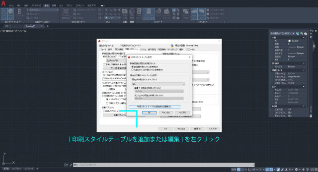 表示される画面下の[印刷スタイルテーブルを追加または編集]を左クリックします。