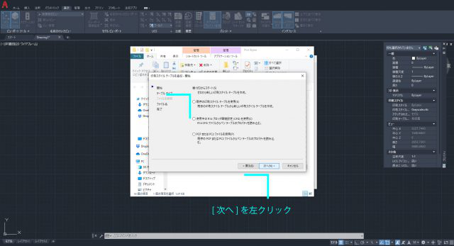 [印刷スタイルテーブルを追加ウィザード]を左クリックすると、 [印刷スタイルテーブルを追加]という項目が表示されるので、[次へ]を左クリックします。