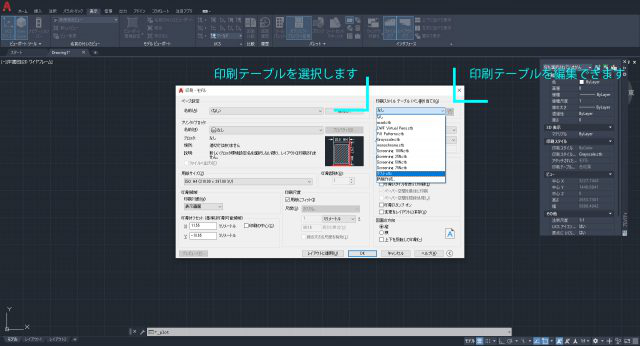別記事「図面を印刷する方法」で、図面の印刷方法を解説しました。その際、触れなかった部分が今回の印刷テーブルです。
