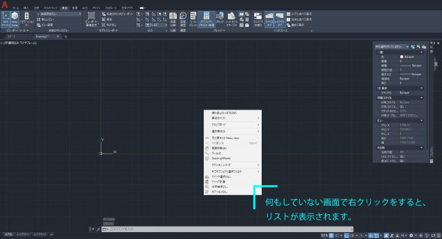 これも意外と便利で、線を描く作業をしている場合には、基本的に線のコマンドを何度も実行することになりますが、右クリックをするだけで、同じことが可能となります。