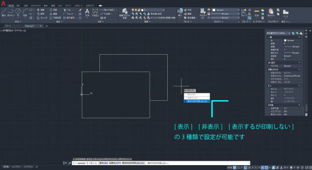 [表示]、[非表示]、[表示するが印刷しない]のいずれかを選択し、[Enter]キーを押す