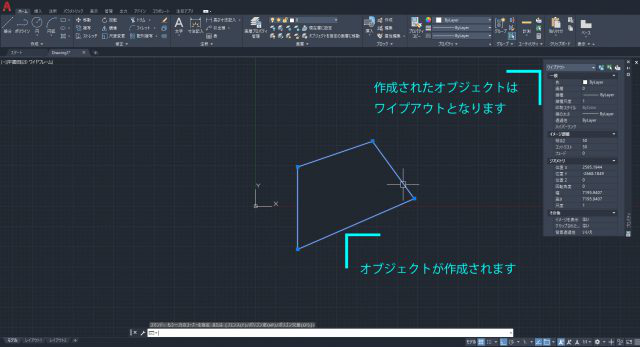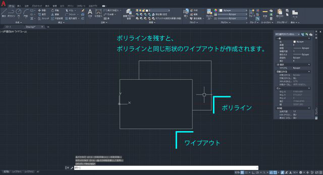 作成したポリラインと同じ形状のワイプアウトが新たに作成されている