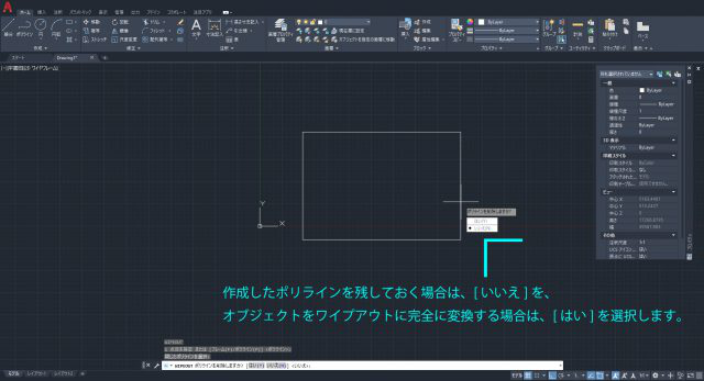 ワイプアウトの作成方法② ポリラインをワイプアウトに変更する