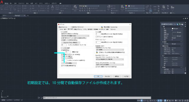AutoCADには、2つの自動保存方法があります。どちらも、初期設定で自動的に作成されています。