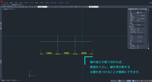 建築図面では、このような等分割はそこまで利用しませんが、状況に応じて様々な使い方が可能となっています。