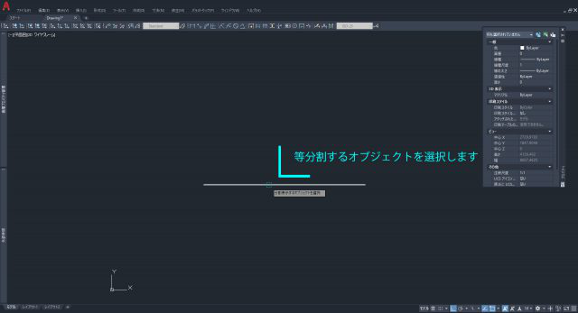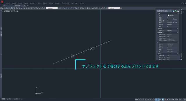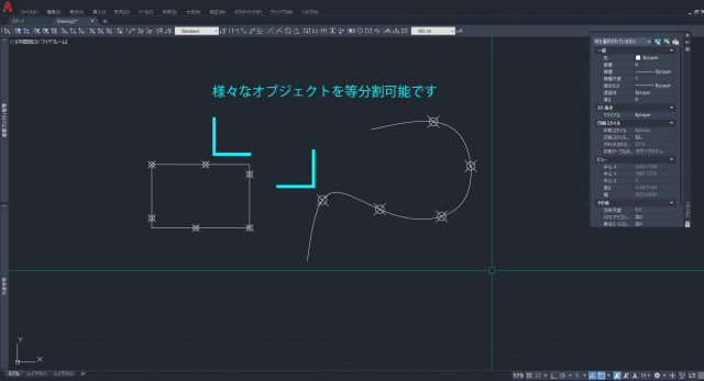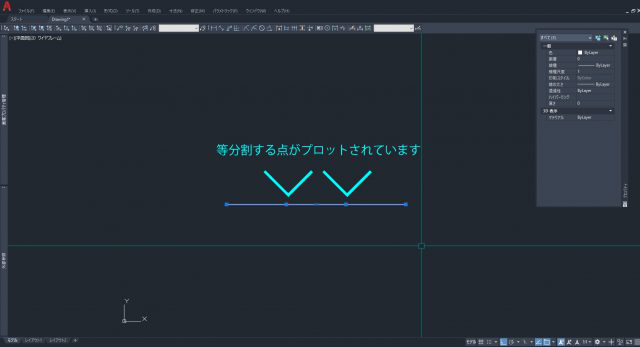 AutoCADの等分割とは、「オブジェクトを切り分ける」のではありません。オブジェクト上に「等間隔で点をプロットする」ことを示します。
