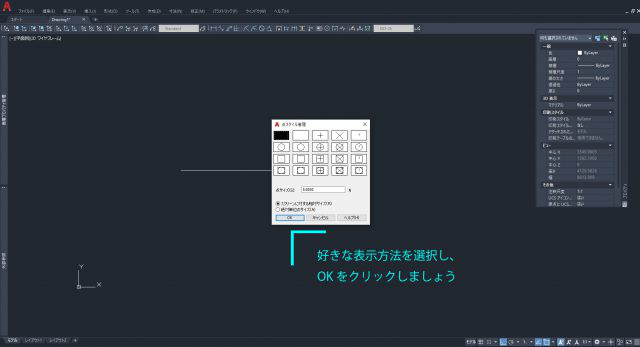点の表示スタイルを設定する画面になるので、好きな表示方法を選択し、[OK]をクリックしましょう。