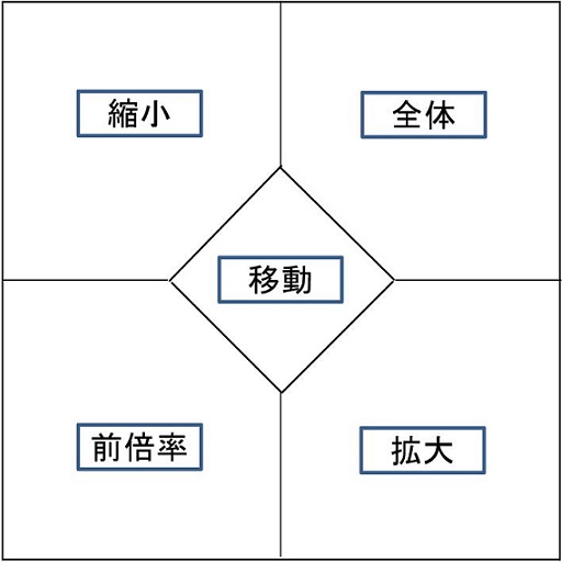 ※拡大操作のみ他と違っていてドラッグ=範囲指定も兼ねています。指定した範囲の拡大表示となります。
