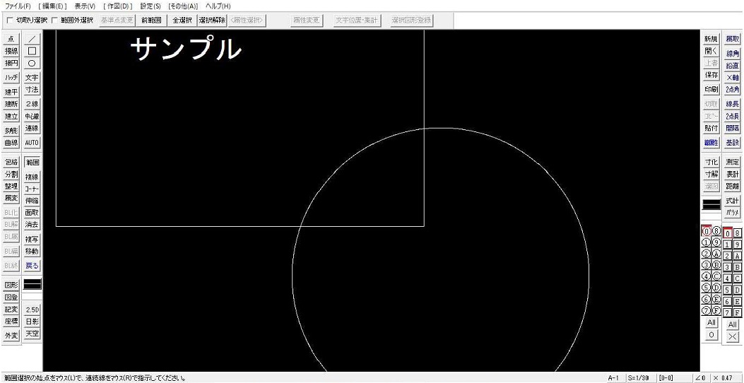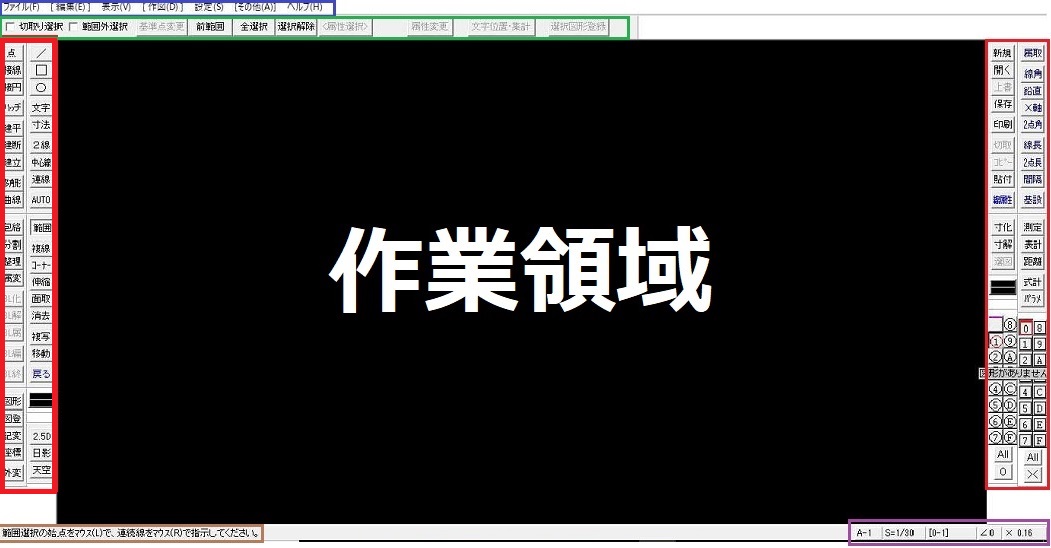 作 図/線を引いたり、文字を書いたり作図に必要な操作を行えます。
