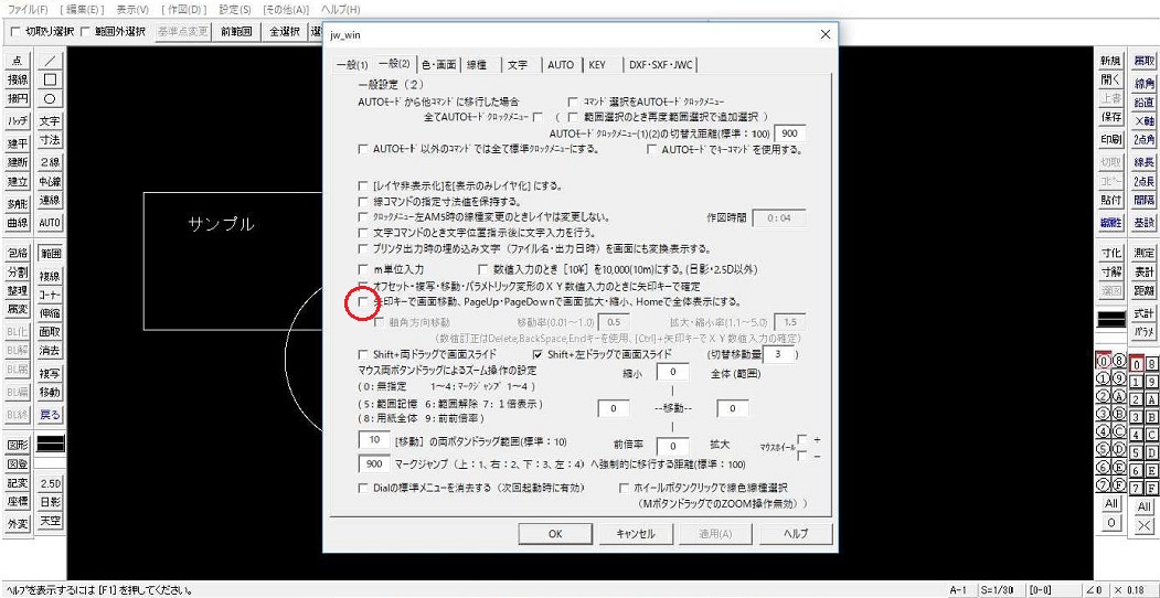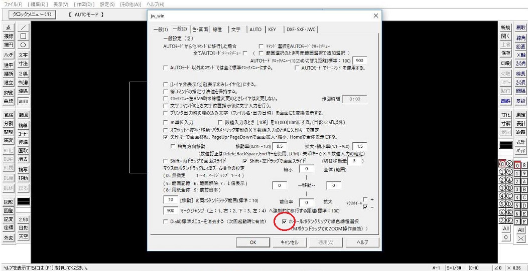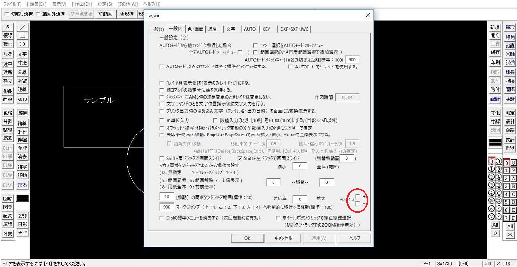 設 定/『Jw_cad』を使用するにあたっての設定を行えます。