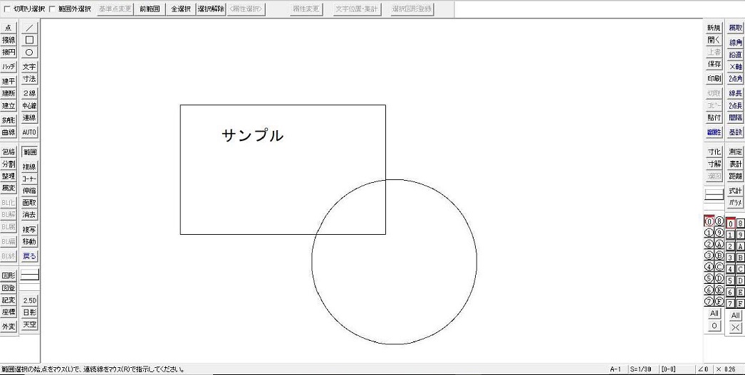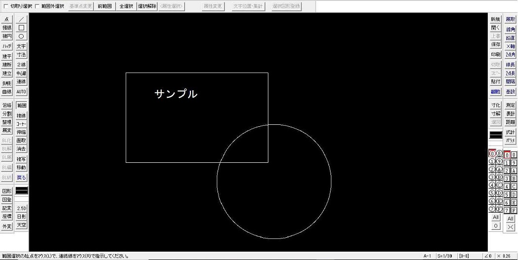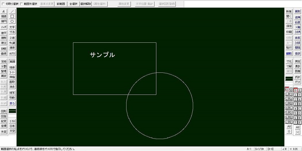 同様の考えで 両クリック→ドラッグ→「全体」領域でクリックを離す で図形の全体を表示する画面になります。