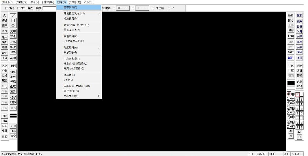 『Jw_cad』を使用するにあたり先ずは設定を行うのですが、その前に基本的な画面構成について説明したいと思います。