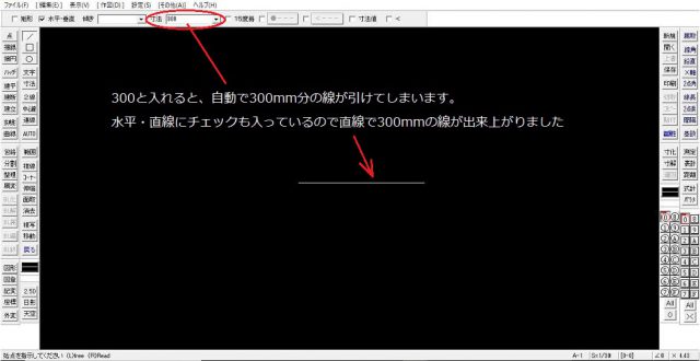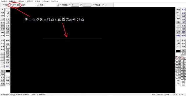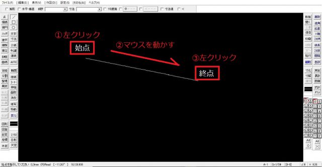 これで線を引くことは出来ました。しかし、実際に作図をしていこうと思うと現実はこの操作はあまり使いません。