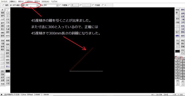 引こうとする線には指定の角度をつけることも可能です。