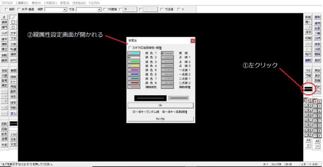 実際に線を引く前に、引こうとする線の種類(線種、線色)を設定します。