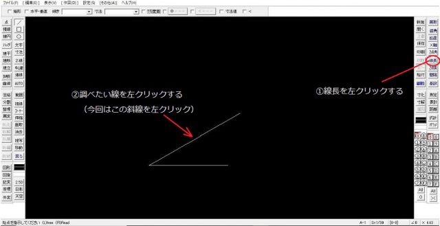 次に線長を調べたいと思います。線角を調べた時と同様の操作で「線長」を左クリックします。