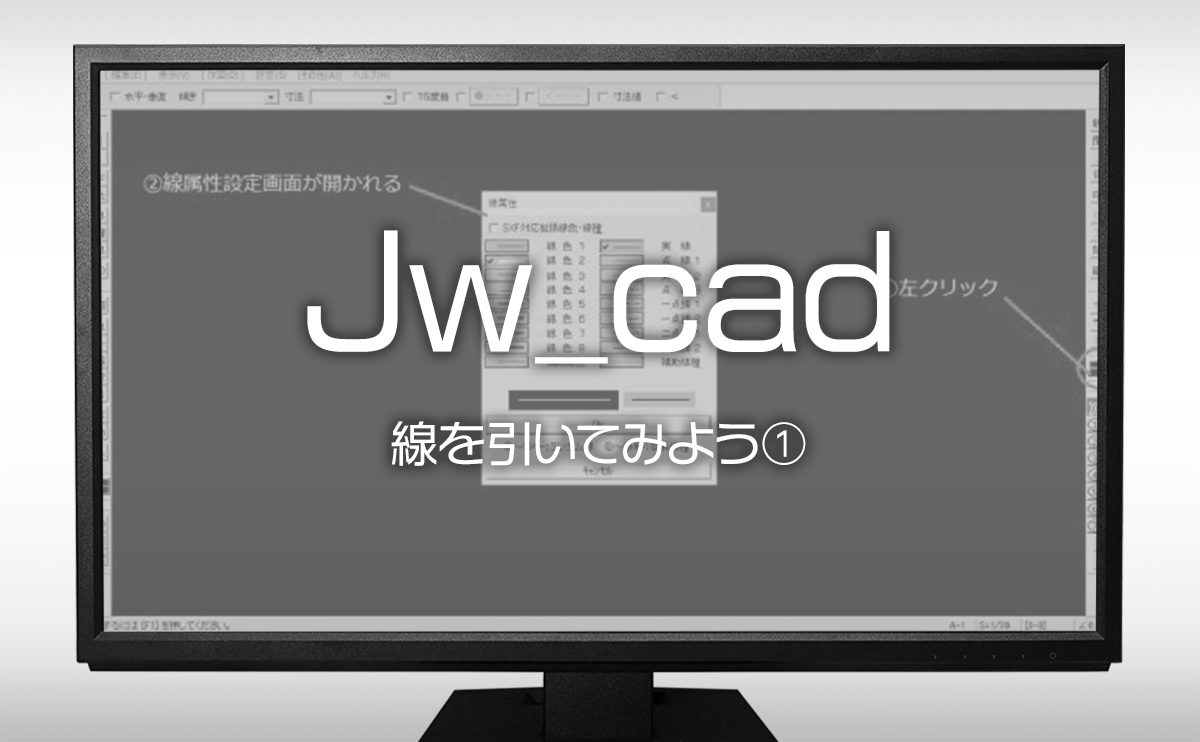 作業できる環境が整ったら、実際に作図をしていきましょう。その一番の基本となるのは「線をひく」という事です。ここでは線種の設定や変更など線を引く作業について説明していきます。