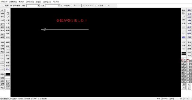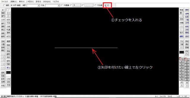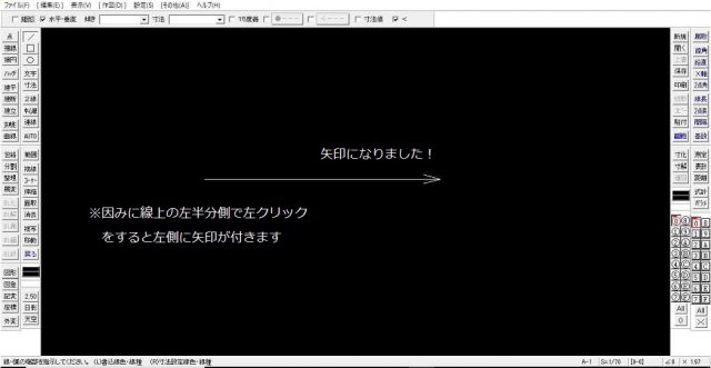 今回は中心や端点など関係なく、任意にその線上から線を引いてみたいと思います。また、線の端部を矢印に変える方法もご説明します。