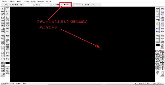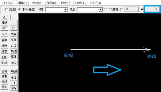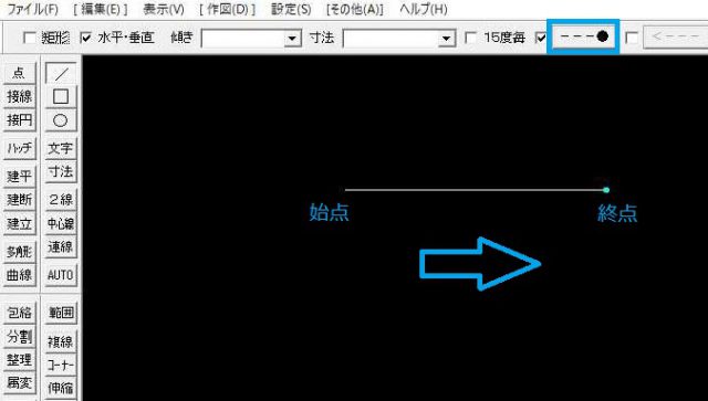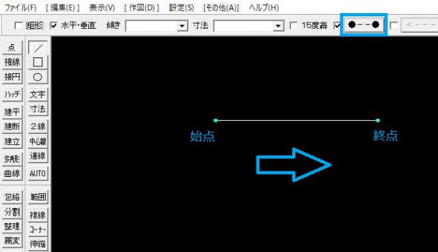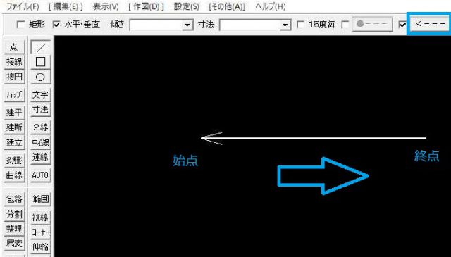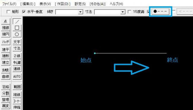 因みに端部の変更をするにあたり、その変更を反映させるのは引こうとする線の始点にするのか、また終点にするのか、それとも始点・終点どちらにも反映させるのかを設定する事が出来ます。