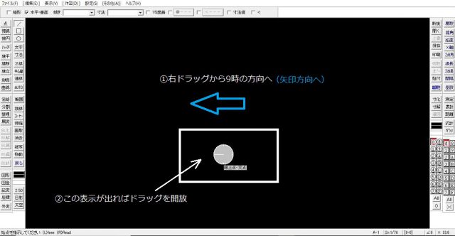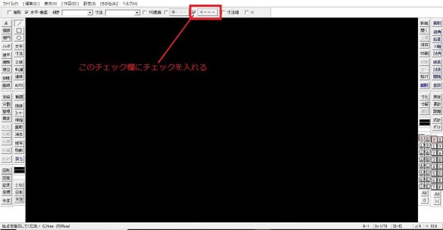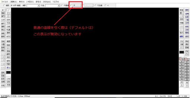 前回までの説明(線を引いてみよう①、線を引いてみよう②)で、既にある別の線を利用して、その中心線を引いたり、端点より線を引いたりしました。