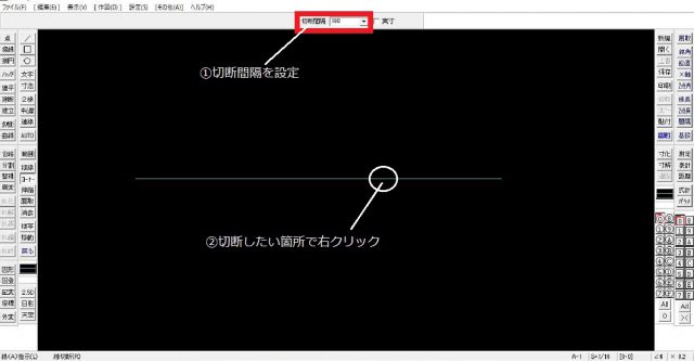 線の切断をすることが出来ます。先ほど作成した線を例に説明します。