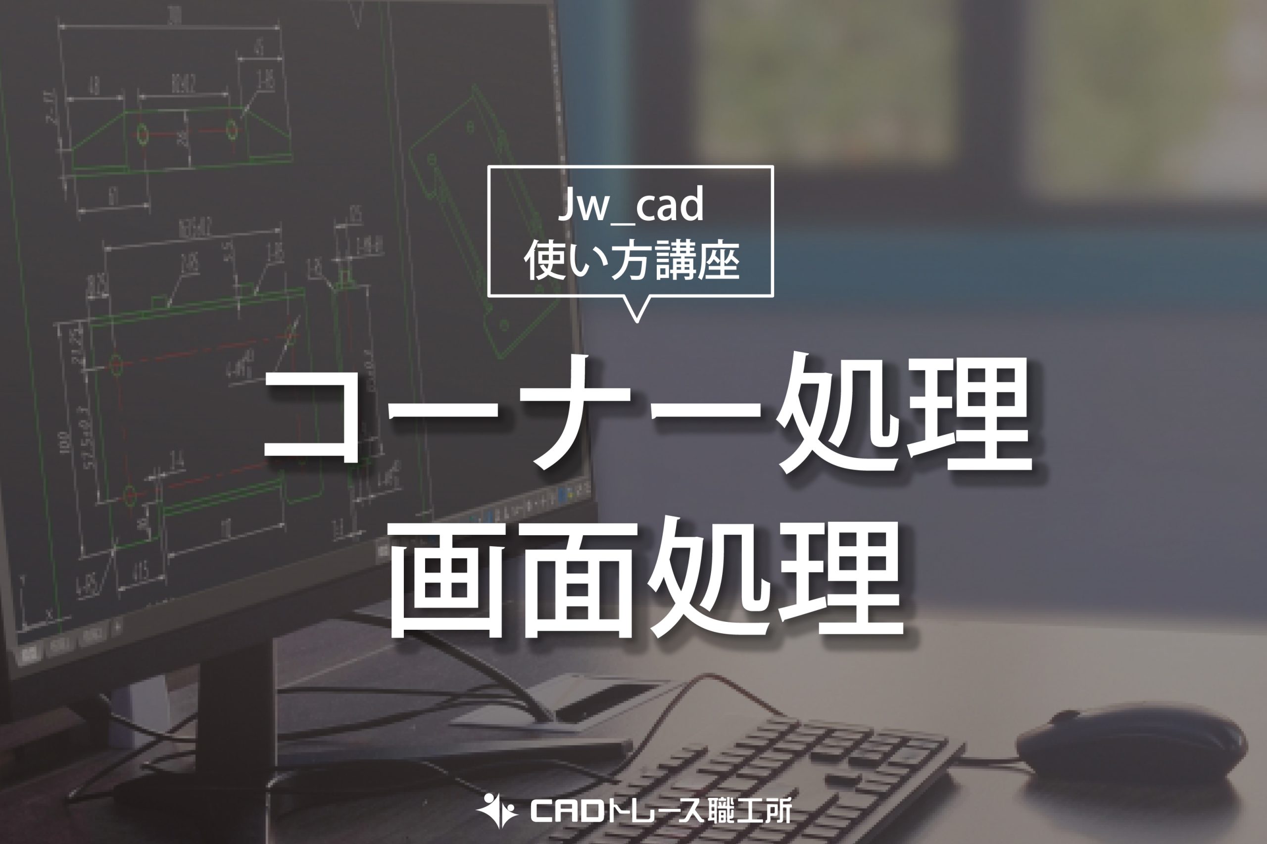 jw_cadでは、角の部分の適宜の整理 ⇒ コーナー、既に繋がっている端部の処理 ⇒ 面取 として扱うので下記より説明していきます。